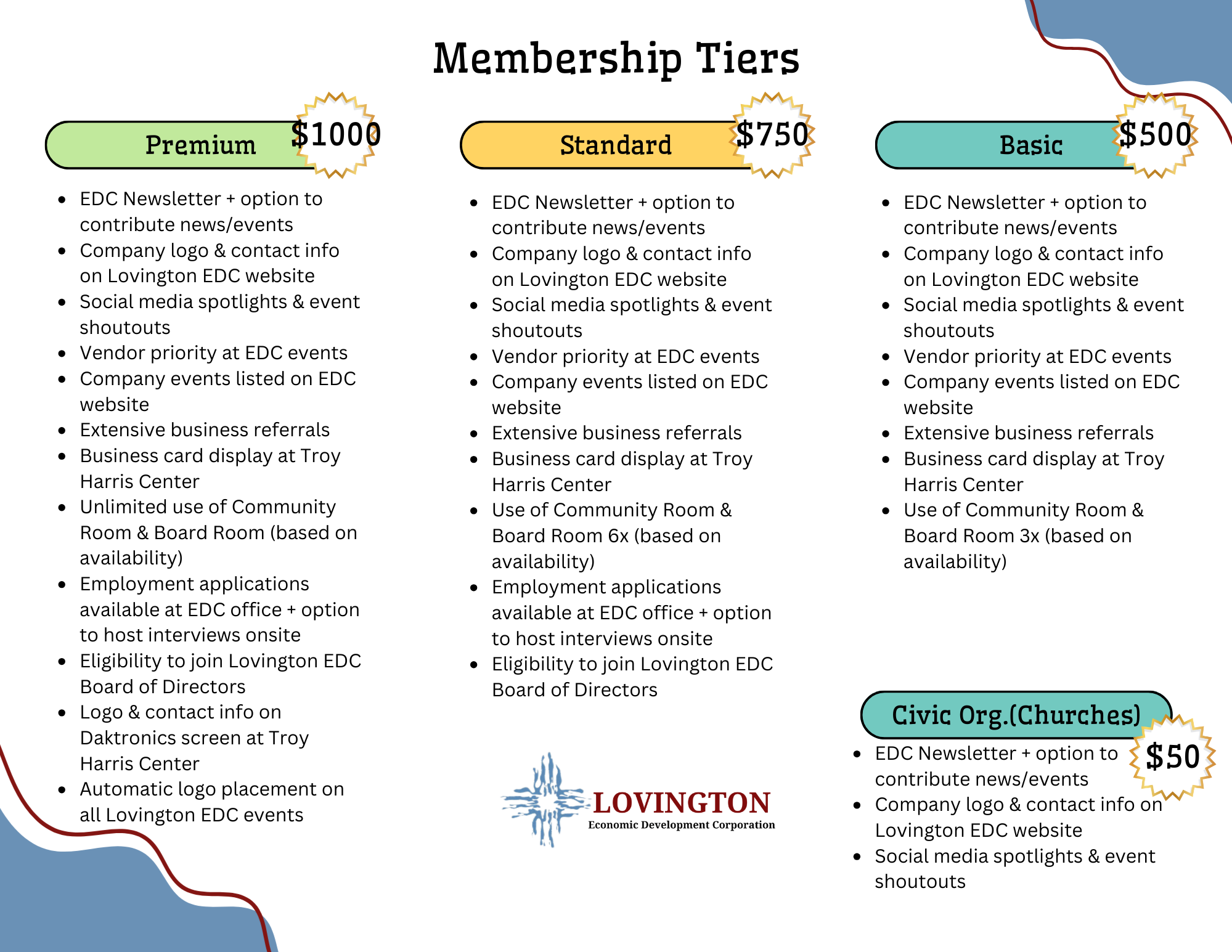 Your Lovington EDC membership will officially begin once membership dues have been received.
